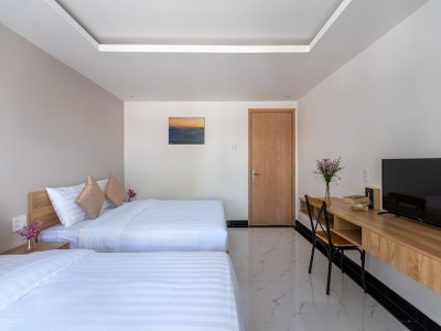 - PHÒNG NGỦ: 1 Giường đôi, Bàn trang điểm, Smart TV, Quạt, Máy sấy, Tủ quần áo, khăn,...